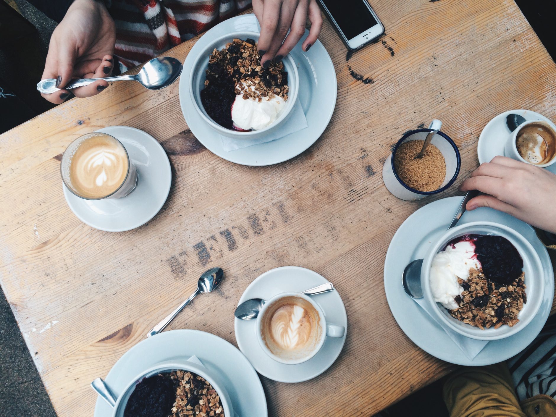 Tveimur mínútum frá Oxford Circus er Kaffeine. Huggulegt og mjög vinsælt kaffihús sem skal forðast á háannatíma ef vonast er eftir sæti. Hér voru smakkaðar allar tegundir af kaffi og uppi stóð flat white og macchiato. Ristaða bananabrauðið þeirra með heimagerðri sultu er nauðsynlegt með!