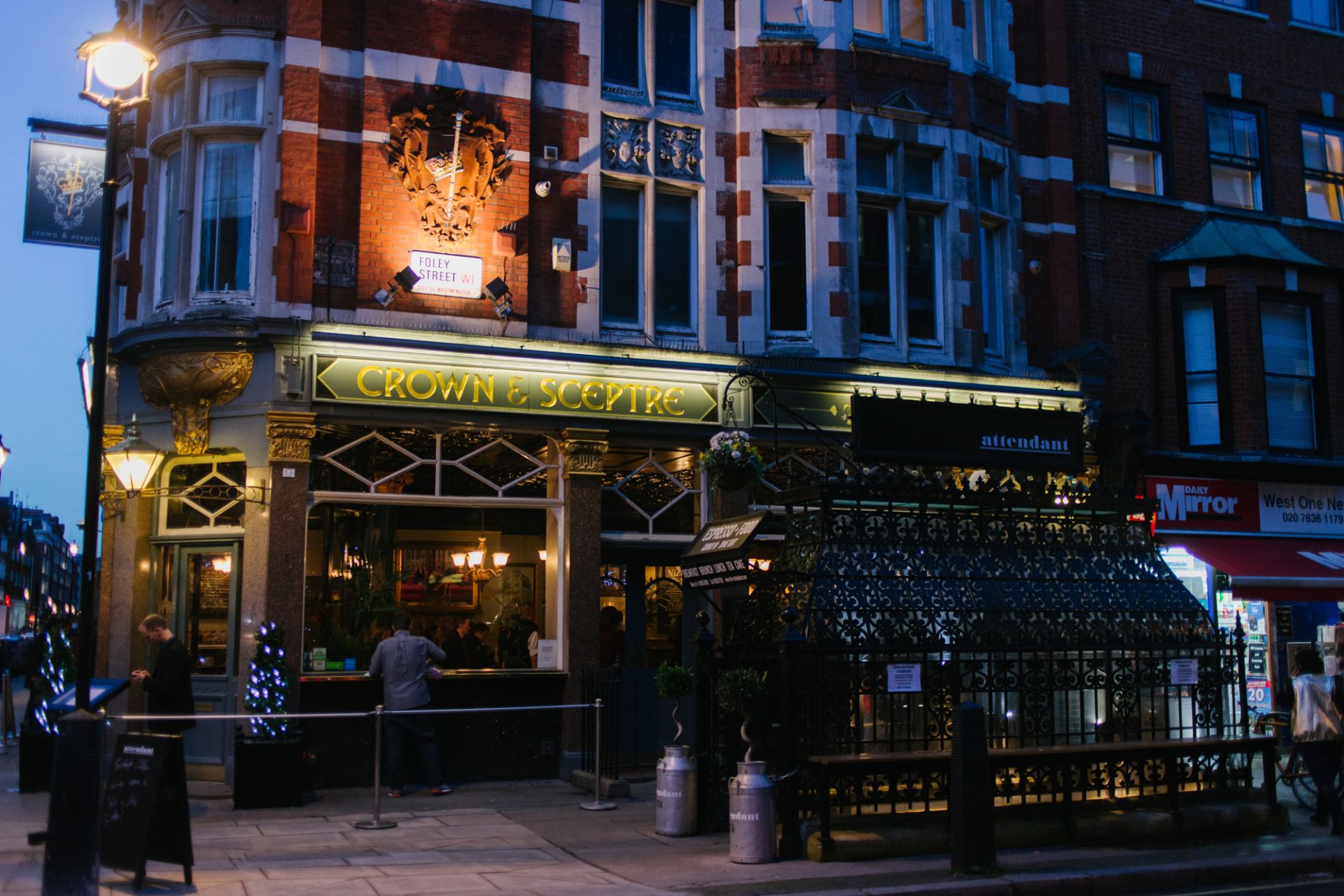 Stuttu frá Oxford Street er yfirgefið neðanjarðarklósett frá Viktoríu tímum í kringum 1890. Fyrir nokkrum árum var klósettið gert upp og umbreytt í fallegan kaffibar, The Attendant. Á þessum tímapunkti var kaffidrykkjan orðin okkur um megn þannig að te varð fyrir valinu. Kaffið á samt sem áður að vera afbragðs gott og bakkelsið ekkert síðra. Skemmtileg upplifun á huggulegum stað með vinalegu starfsfólki.