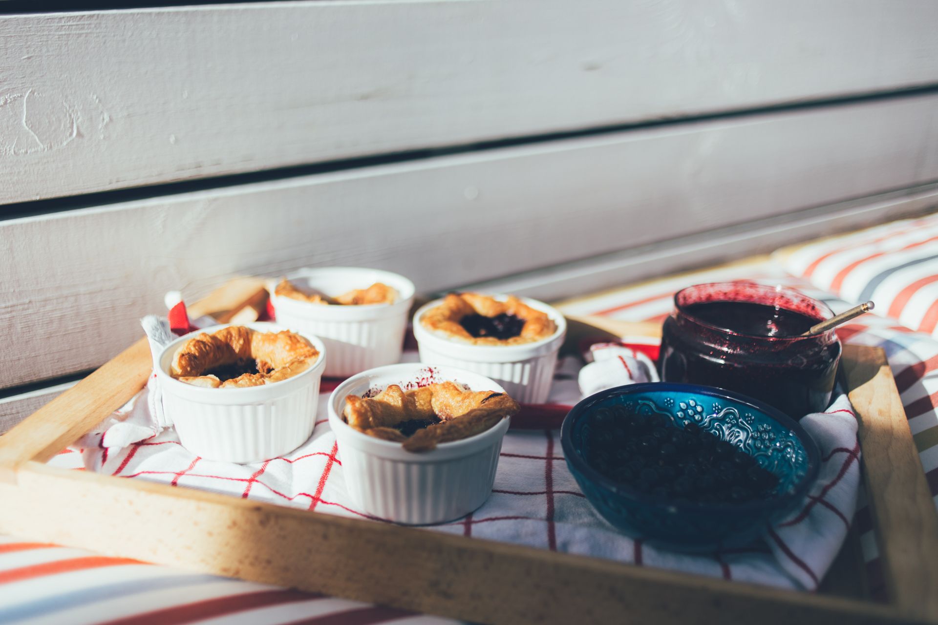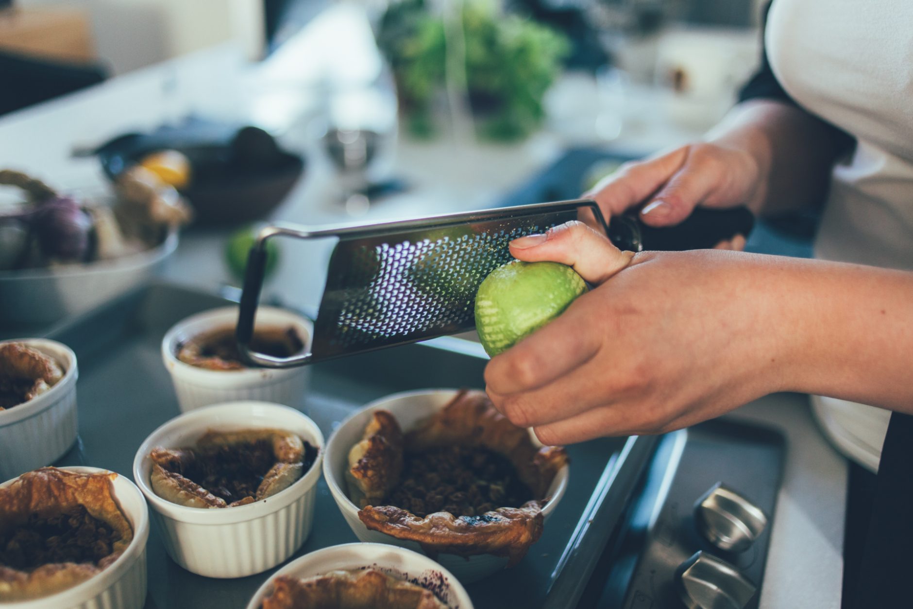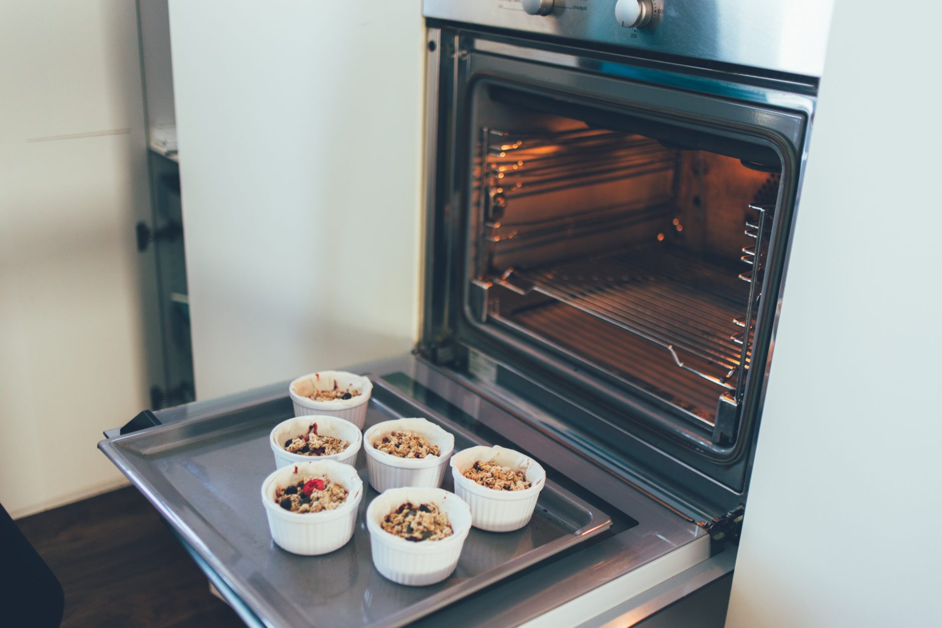 Fletjið og raðið smjördeiginu í botninn og upp kantana á eldföstu móti. Það má nota eitt stórt ílát eða mörg lítil, hvoru tveggja gengur upp.