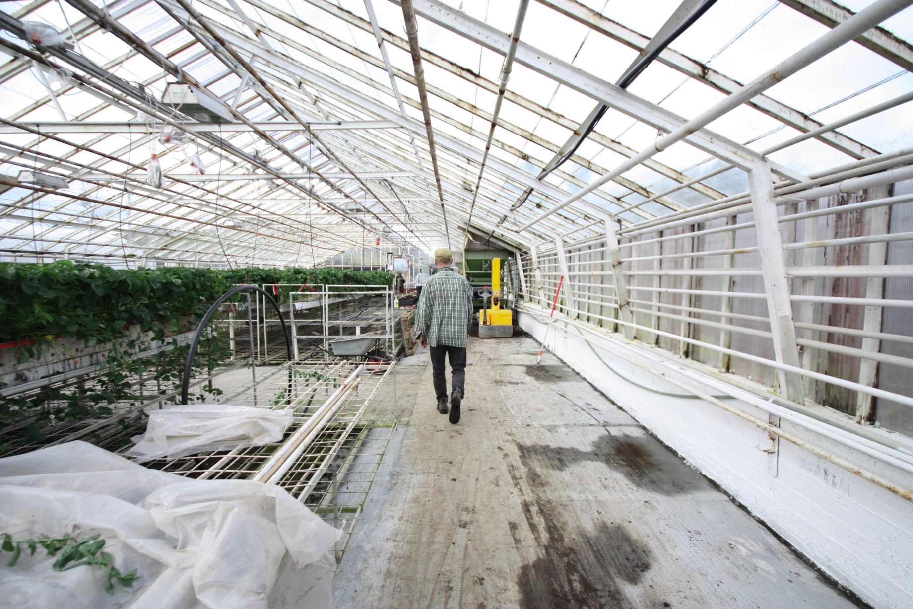 Á sumrin eru ræktuð jarðarber í stað túlípana í Dalsgarði. „Jarðarberin eru mín sumarstemning,” segir hann. Túlípanavertíðin stendur yfir frá jólum og endar í byrjun maí. Þá standa gróðurhúsin tóm og er því kjörið að nýta þau í annars konar ræktun. „Ég ákvað að fara í einfalda ræktun og valdi jarðarberin. Það gaf afleitlega í fyrra en mjög vel árin þrjú þar á undan og svo sæmilega í ár. Svona er þetta bara. Það er rosa fínn markaður í þessu af því við erum að tína beint inná markaðinn. Fólk þarf ekkert að kíkja í öskjurnar og athuga hvort eitthvað sé ónýtt eða óþroskað. Það er bara verið að tína beint uppí viðskiptavininn.“