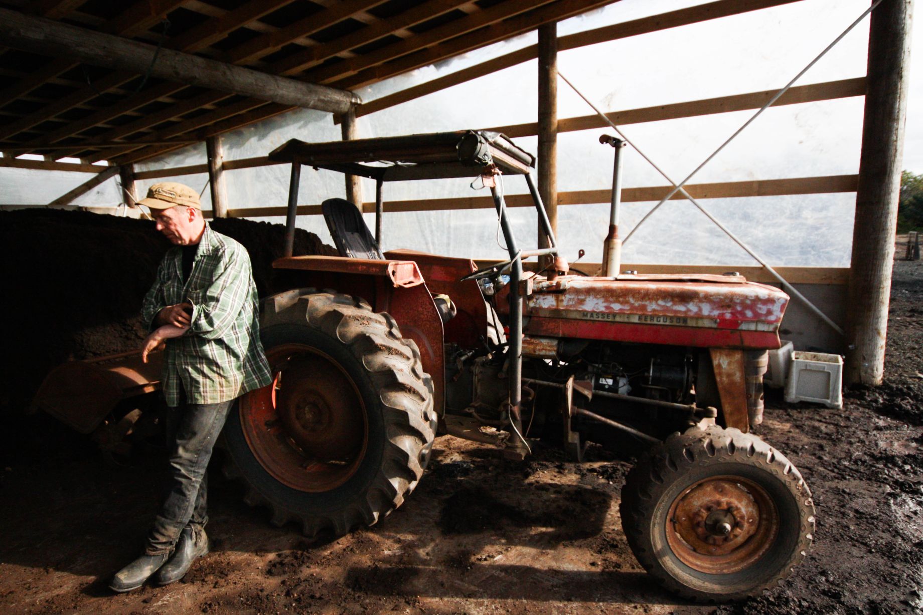 Á yfirbyggðu plani á bakvið gróðurhúsin stendur stór moldarhrúga. Við hlið hennar er gamall traktor sem Gísli notar til þess að blanda moldina. „Moldina blanda ég sjálfur í ár. Moldin sem ég fékk í fyrra var ekki nógu góð svo það urðu nokkur afföll í túlípönunum. Það er svona með garðyrkjuna, það eru eilíf vandamál sem þarf að bregðast við.“ Gísli veltir moldinni á milli fingra sér og útskýrir fyrir okkur hvernig hann blandar hana. „Ég er með íslenska mómold sem er frekar þétt í sér en blanda hana við svarmosa og vikur sem gerir hana djúsí og léttari í sér. Ég er spenntur að sjá hvað kemur út úr þessu og vona að ég sé kominn með toppmold.“