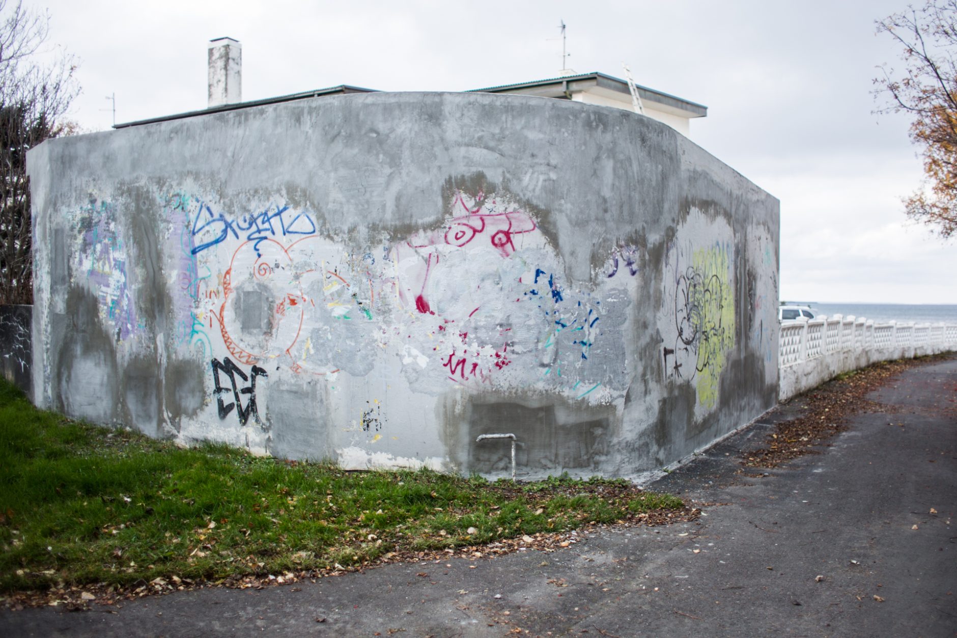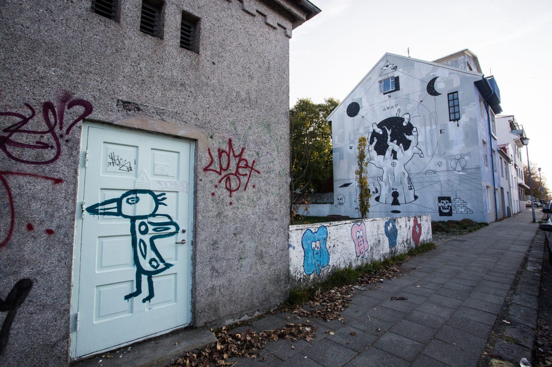 A: Svo er það stóra spurningin. Hvað er opinbert rými? Hvar megum við, sem almennir borgarar, ráðast til atlögu? Ef við tölum um húsvegg til dæmis. Innra lagið er augljóslega einkaeign. En hvað með það ytra, það sem snýr að okkar götumynd? Hvað með ljósastaura og rafmagnskassa?