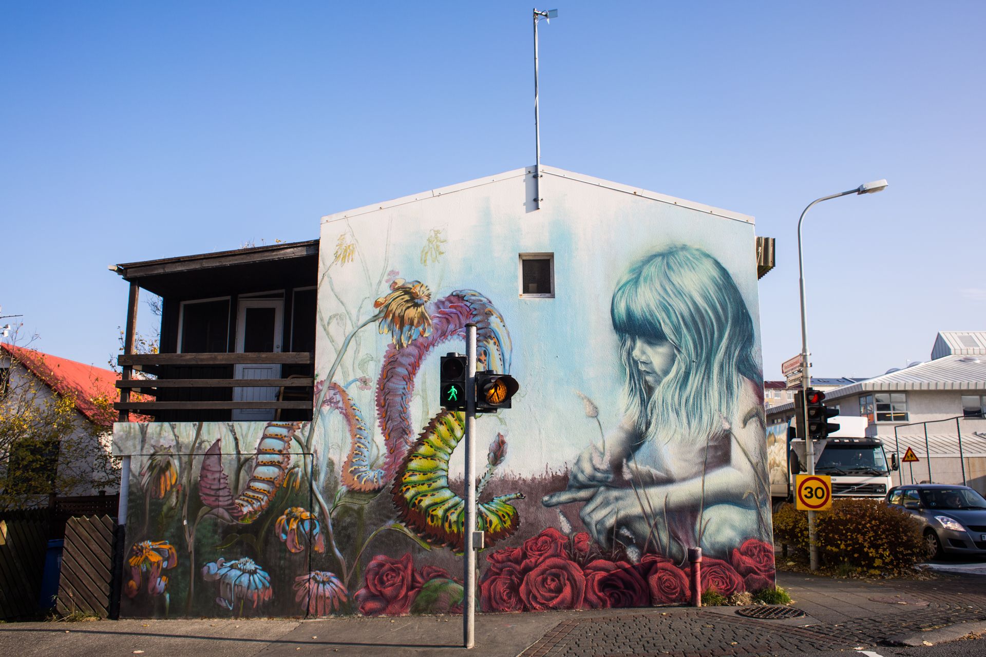 A: Einmitt. Maður er helst að vinna á iðnaðarhúsnæði, göng eða bara eitthvað grátt svæði. Svo þarf líka að hafa í huga hluti eins og; hvernig gengur fólk um göturnar? Er það ekki ýmist frekar hokið og niðurlútt með augun niður á við, eða með teinrétt bakið, heiminn í fangi sér og horfir upp til himins? Það skiptir máli að fanga athygli áhorfandans.
