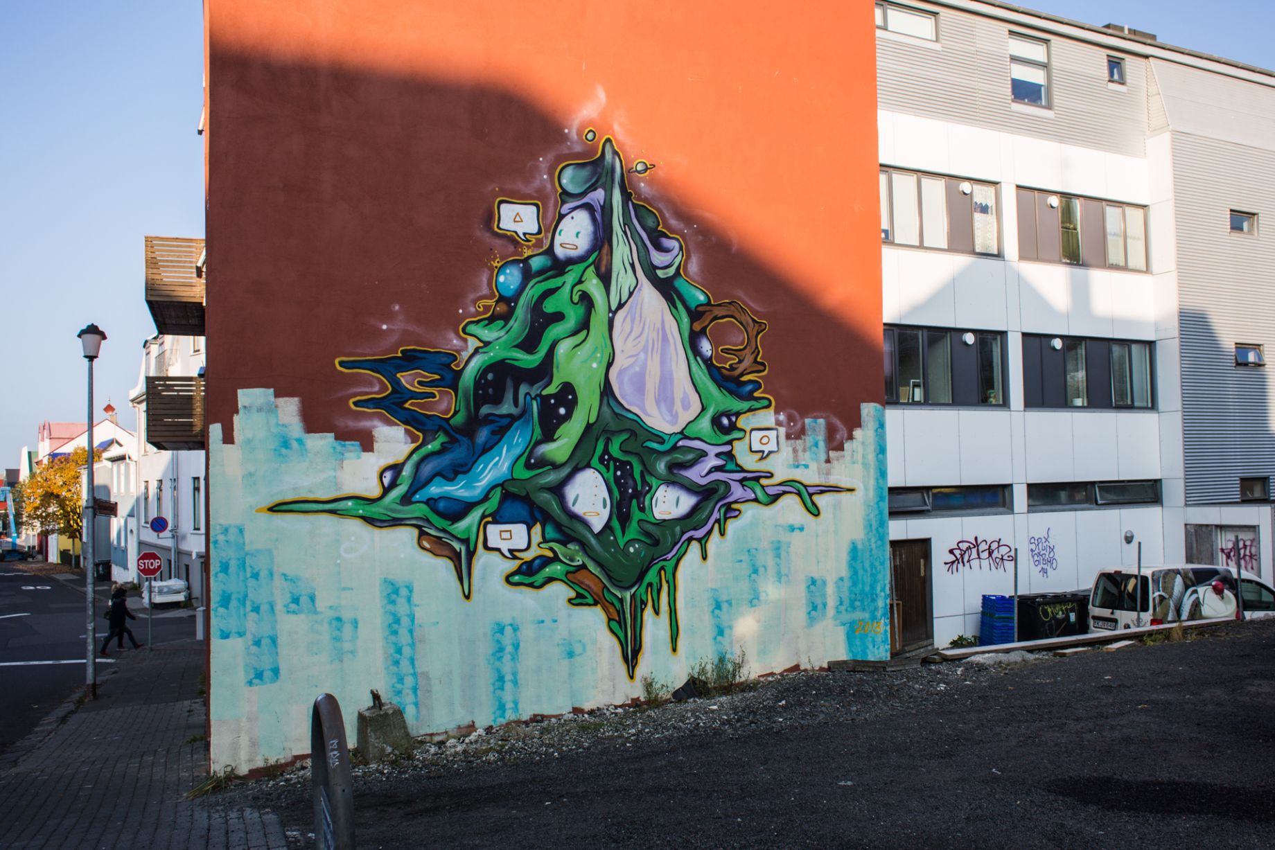 A: Það er áhugavert að fylgjast með hvernig íslenska graffitisenan er að þróast, fólk er almennt að hugsa út í gæði, stíl og flæði. Maður sér mun á þeim sem hafa farið út í heim og prófað þann leikvang. Þar ertu tilfinningalega ótengdur svæðinu; þú þarft að vera einhverskonar stríðsmaður. Svæðið er stærra, leikmennirnir fleiri og leiksvæðin ótrúlega ólík varðandi reglur, hvaða myndefni virkar og hvernig orkan og sagan hefur þróast á hverju svæði fyrir sig.