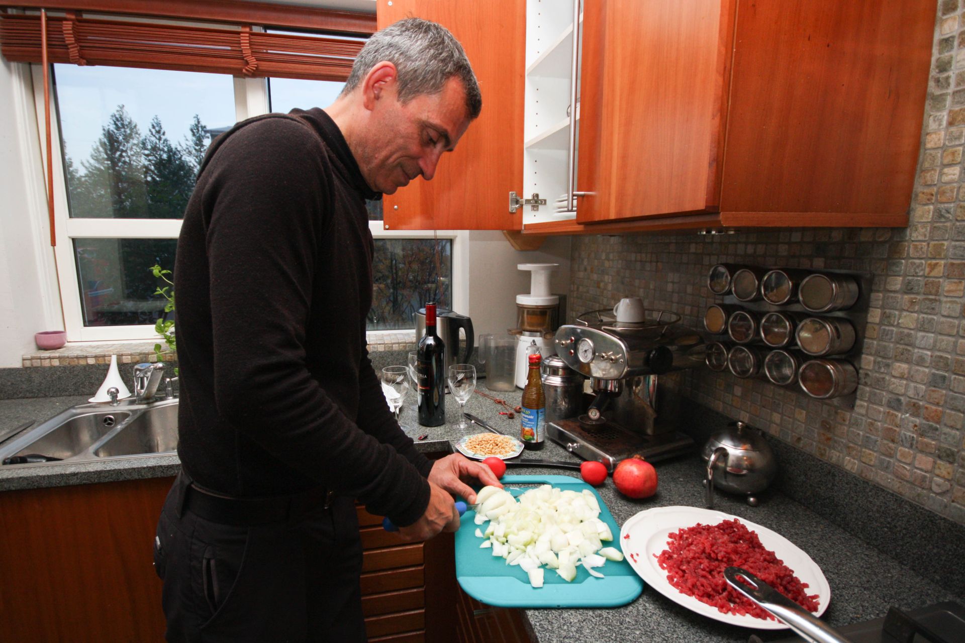 Jónas Yamak er fæddur og uppalinn í Líbanon en hefur búið á Íslandi frá árinu 1991. Hann er mikill matgæðingur og ætlar að elda fyrir okkur einfaldan rétt frá sínum heimahögum. Jónas tekur á móti okkur og býður okkur velkomin. Heima er einnig sonur hans, Ómar. Íbúðin er björt og falleg í rólegu hverfi í Kópavoginum við Leirdalinn. Stofan er björt og eldhúsið notalegt þar sem gott er að slappa af jafnt við eldamennsku sem og að njóta afrakstursins.