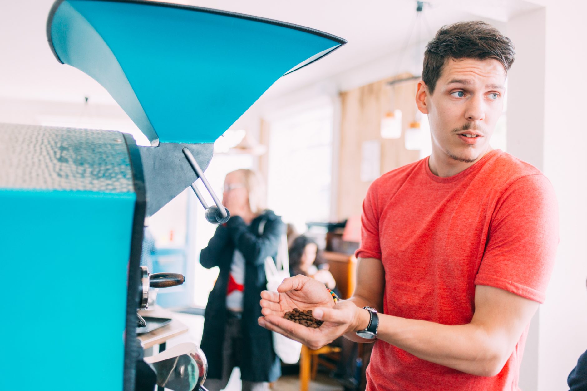 „Ég er búinn að vera að rista baunir í allan morgun. Akkúrat núna er ég að kæla þær niður. Þetta er síðasta handtakið áður en þær fara í pakkningar en mörg handtök eru á bakvið einn kaffibolla. Við erum með frábæra samstarfsaðila víðsvegar um heiminn sem við treystum og þekkjum. Það skiptir okkur miklu máli að viðskiptin séu rekjanleg en flestar baunirnar fáum við beint frá bónda,“ segir Torfi en vinnuþrælkun í kaffiiðnaðinum er orðin gríðarlega algeng hjá stórfyrirtækjum á borð við Nestlé. „Þær baunir sem við fáum ekki í gegnum persónuleg sambönd eru í gegnum fyrirtæki í Ósló þar sem viðskiptin eru það gagnsæ að hægt er að sjá hversu miklu var eytt í bensín til þess að flytja baunirnar á milli,“ bætir Torfi við.