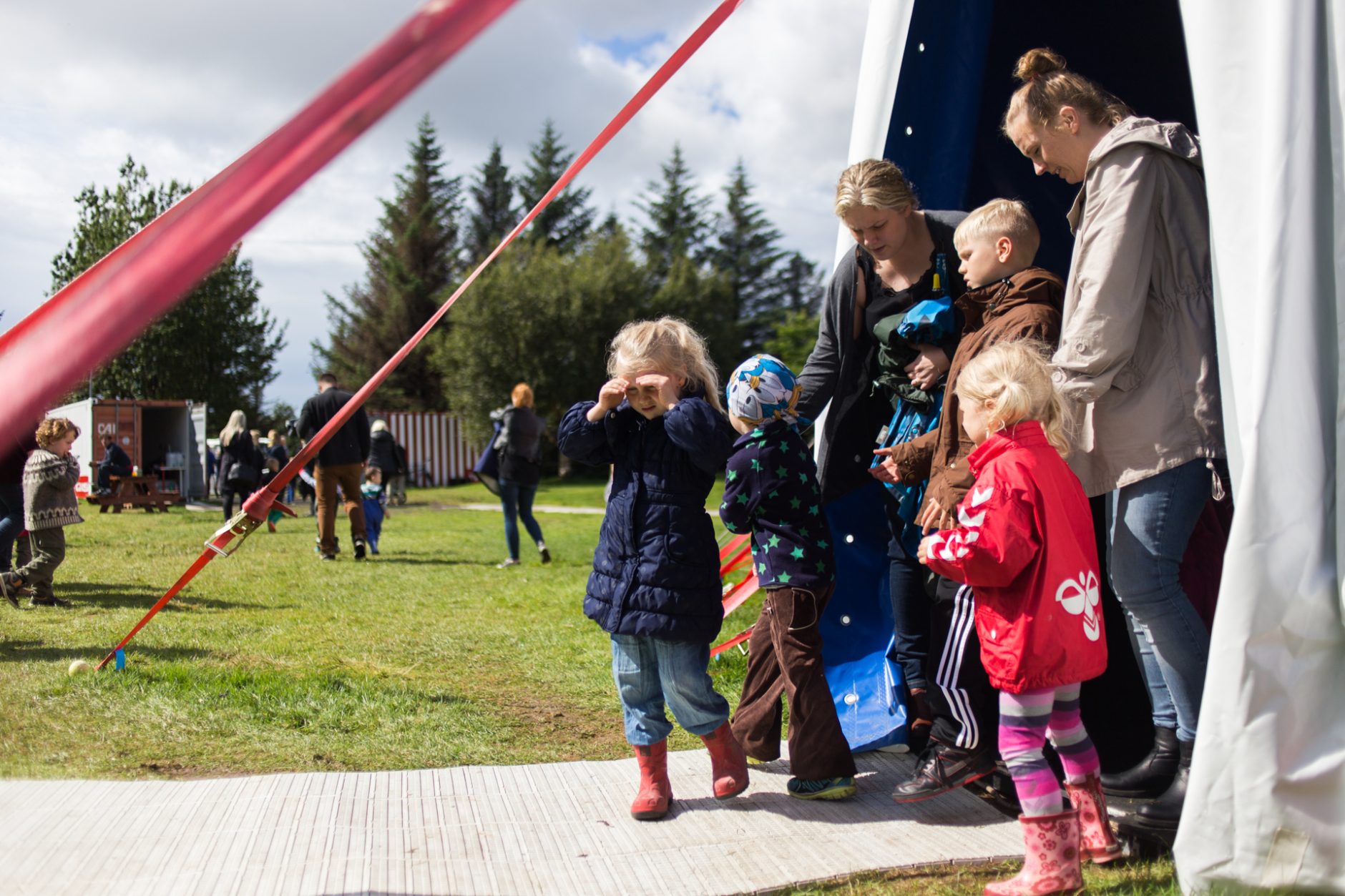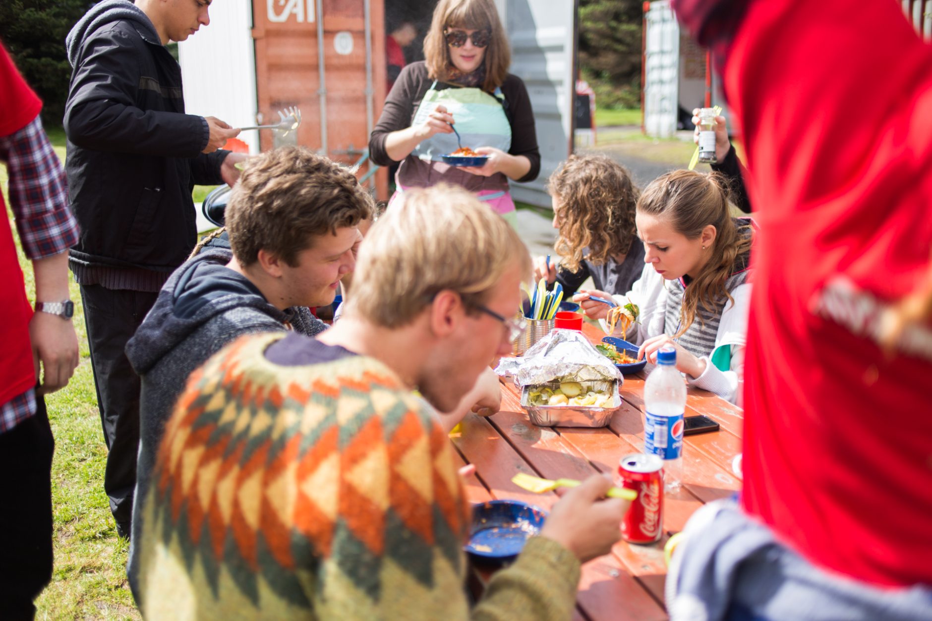 Að sýningu lokinni hefur rigningin vikið fyrir glampandi sól og má sjá yngstu börnin hoppa í grasinu, full af innblæstri. Í sirkusnum ganga allir í öll verk, hvort sem það er að sýna, selja kandífloss, vera í miðasölunni eða elda fyrir allan tuttugu og fimm manna sirkushópinn. Hádegismaturinn í dag, spagettí með salati og sósu, er eldaður í gámi rétt hjá Jöklu og er eldunaraðstaðan til mikillar prýði. Sólarglætan er nýtt og sest hópurinn saman að snæðingi úti. Í hádegismat er farið yfir mistök sem að sjálfsögðu eru daglegt brauð á sirkussviðinu. Kúnstin er að bregðast svo vel við mistökunum að áhorfandinn haldi að þau séu gerð af ásetningi. Þá eru dónakarlaráðstafanir gerðar fyrir Skinnsemi – fullorðinssirkusinn, en þar er jafnan sýnt mikið skinn. Óþarfi að tipla á tánum í kringum það að dónar eru ekki velkomnir í glænýtt sirkustjaldið. Nonni leikur Kára að húlla í stóra húllaatriðinu og svo er boðið upp á snúða frá deginum áður því Daníel á afmæli í dag.