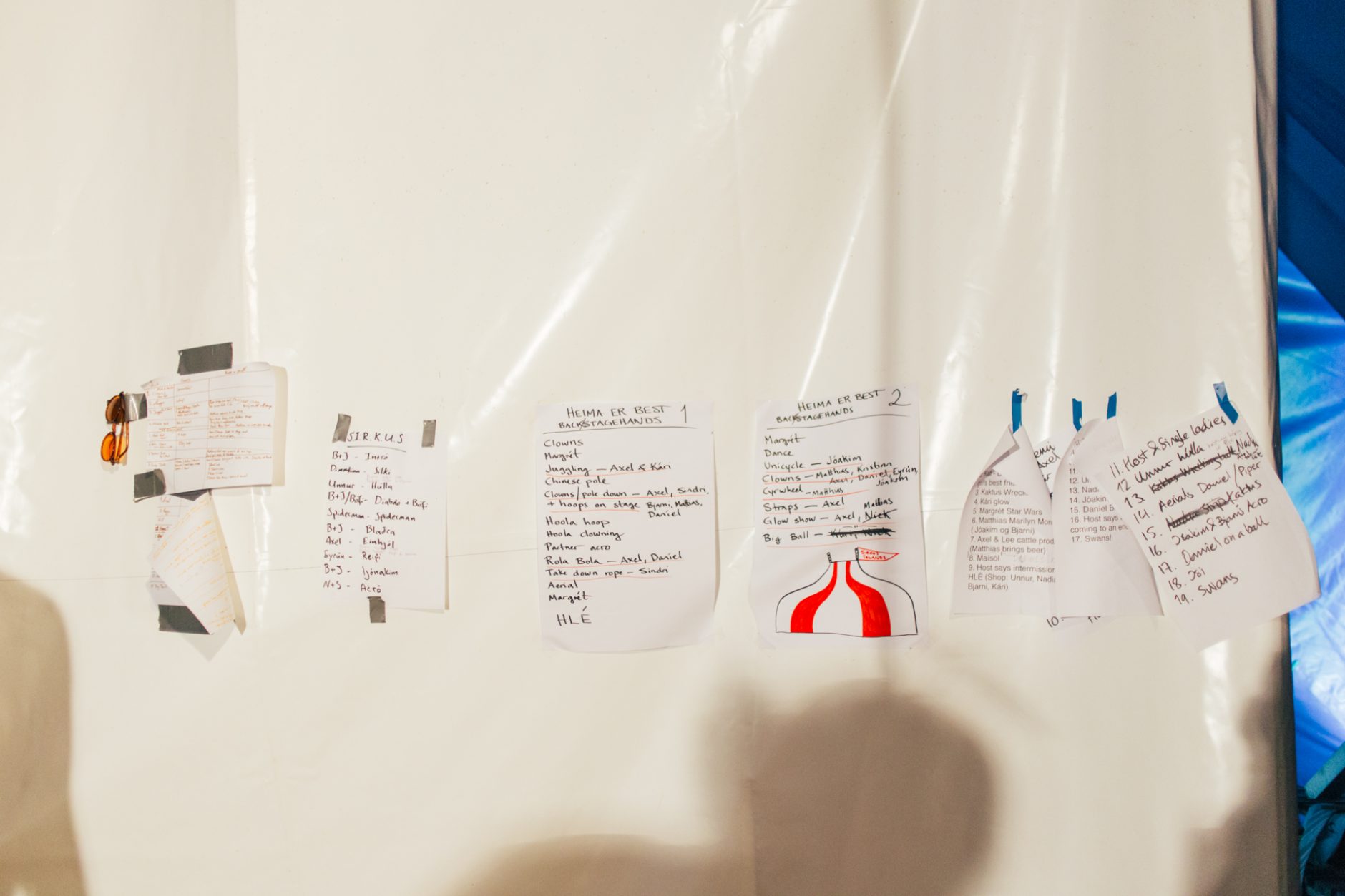 Á meðan Heima er best er í gangi eru skrifstofudömurnar að útbúa kvöldmat sem verður pasta þennan daginn. Þegar sýningunni lýkur hjálpast allir við að þrífa tjaldið, taka upp rusl undan bekkjum og þess háttar. „Aldursbil þeirra sem starfa í sirkusnum, hvort sem það er á sviðinu eða utan þess er frá 16-38 ára,“ segir Margrét Erla og bætir við: „Svo kemur pabbi með til Ísafjarðar en hann er 64 ára og mun þar af leiðandi sprengja skalann. Hann er æstur í að læra á kandíflossvélina.“