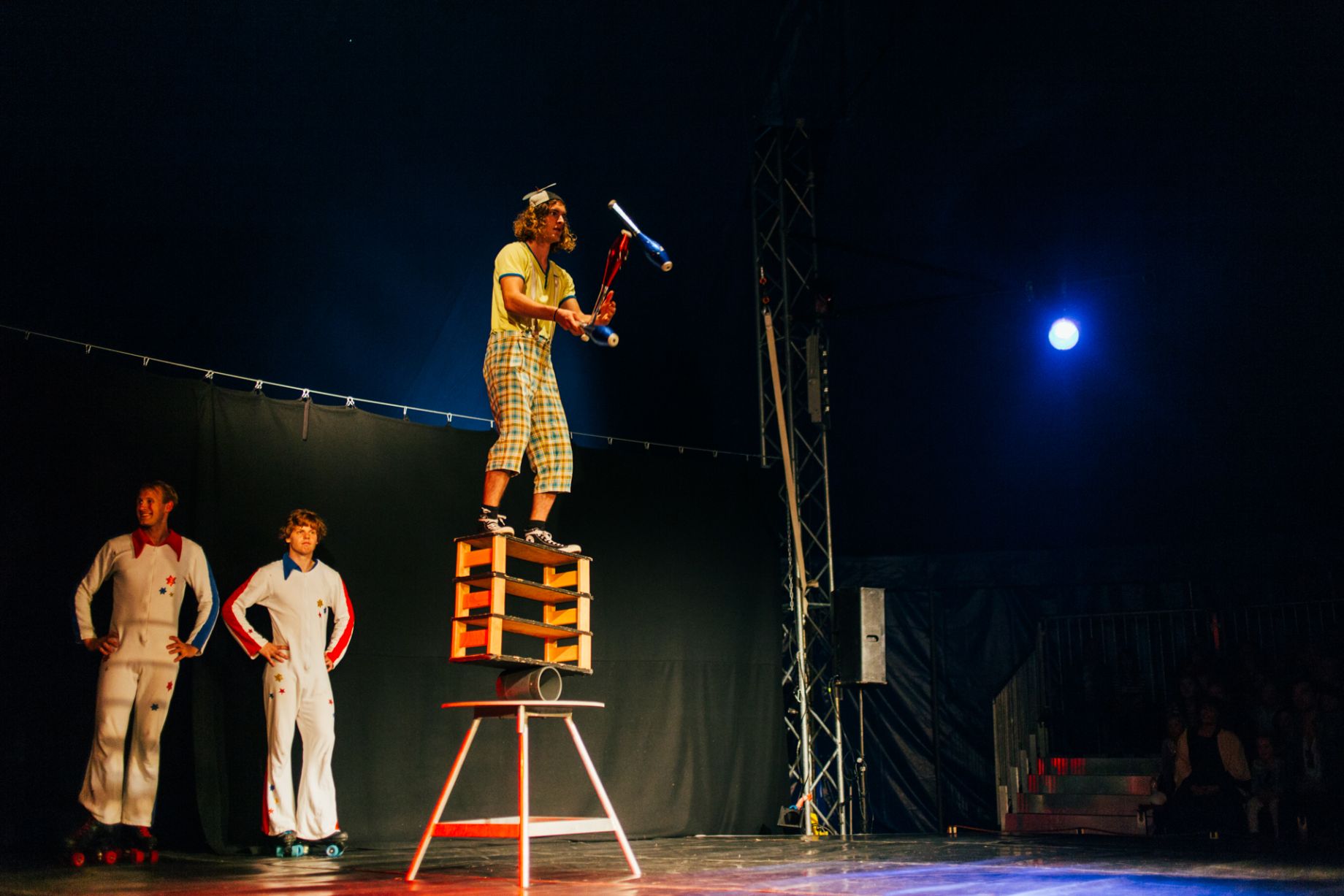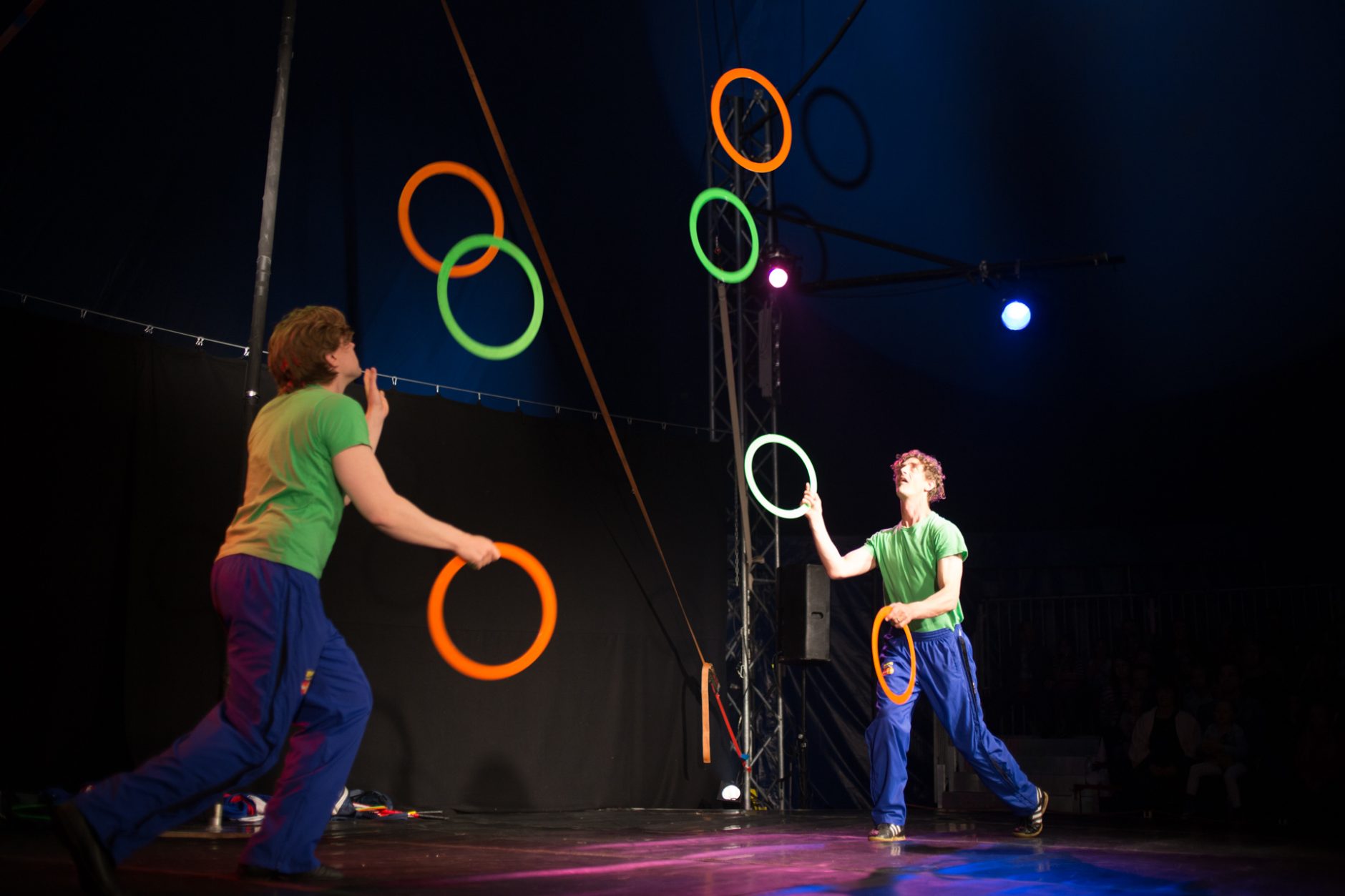 Hálftími er í sýningu og hægt og rólega klæða sirkusdýrin sig í búninga. Öllu er tekið með ró enda þrjátíu sýningar að baki á einungis þremur vikum og því allt komið í ágætis rútínu. Salurinn fyllist hægt og rólega af fjölskyldum en meðalaldurinn er þó nokkuð hærri en í S.I.R.K.U.S. Trúðarnir Labbi og Nebbi sópa poppkorni af gólfinu og grínast í spenntum áhorfendunum þar til ljósin slokkna. Þá skella þeir sér upp á sviðið og hlátursköllin hefjast í salnum nánast á sama augnabliki. Loftfimleikar og jafnvægisíþróttir, húll og einhjólaballett halda áhorfendum svo spenntum að þeir þora varla að blikka augum til að missa ekki af neinu. Tíminn flýgur og fyrr en varir eru boðaðar slæmar og góðar fréttir: Sirkusinn er að verða búinn en enn er þó eitt atriði eftir!