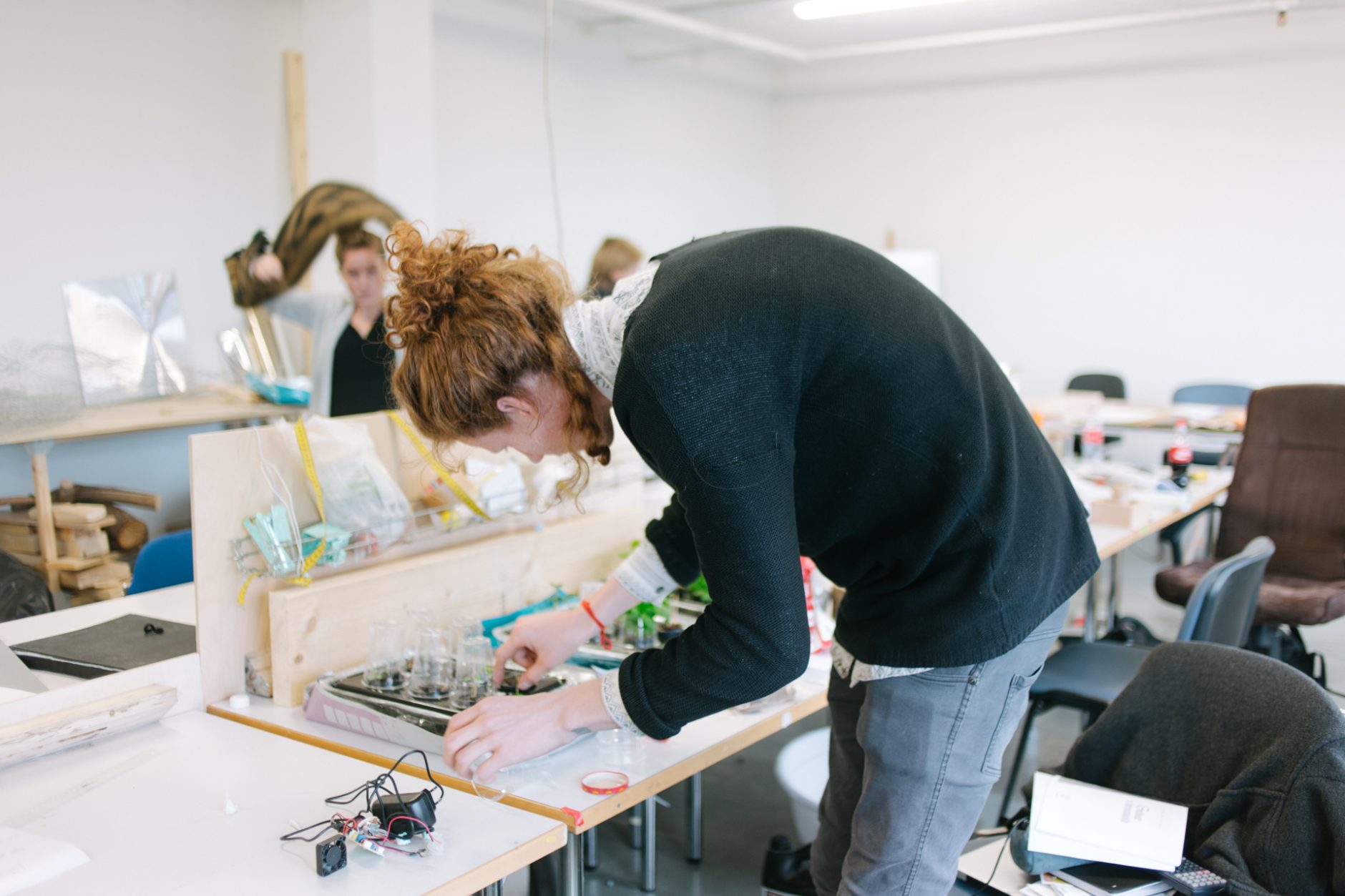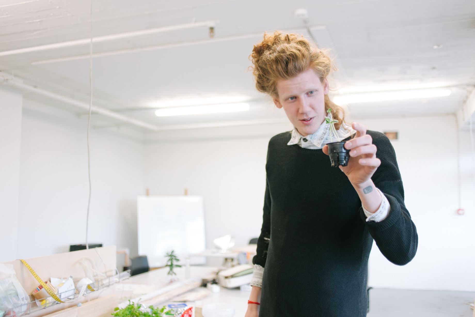 Björn: Ég kann mjög vel við mig í vöruhönnun. Stundum tekur maður reiðisköst og skilur ekkert hvað maður er eiginlega að gera en ég held að það sé bara eðlilegt. Ég er að fatta svolítið núna hvað námið snýst í raun og veru um. Á fyrsta ári vissi maður ekkert hvað maður var að gera. Þegar ég sótti um hélt ég til dæmis að ég væri bara að fara að sitja í sófa og hugsa. Svo þegar ég fengi góða hugmynd þá myndi ég smíða stól eða eitthvað álíka. Þetta er alls ekki þannig. Fyrsta árið vorum við að strauja þara og smíða hirslur og alls konar. Mikil konsept-vinna í gangi; það skiptir engu máli hversu fallegan hlut þú býrð til ef það er ekki sterk pæling á bakvið hann. Maður er aldrei bara að smíða stól.