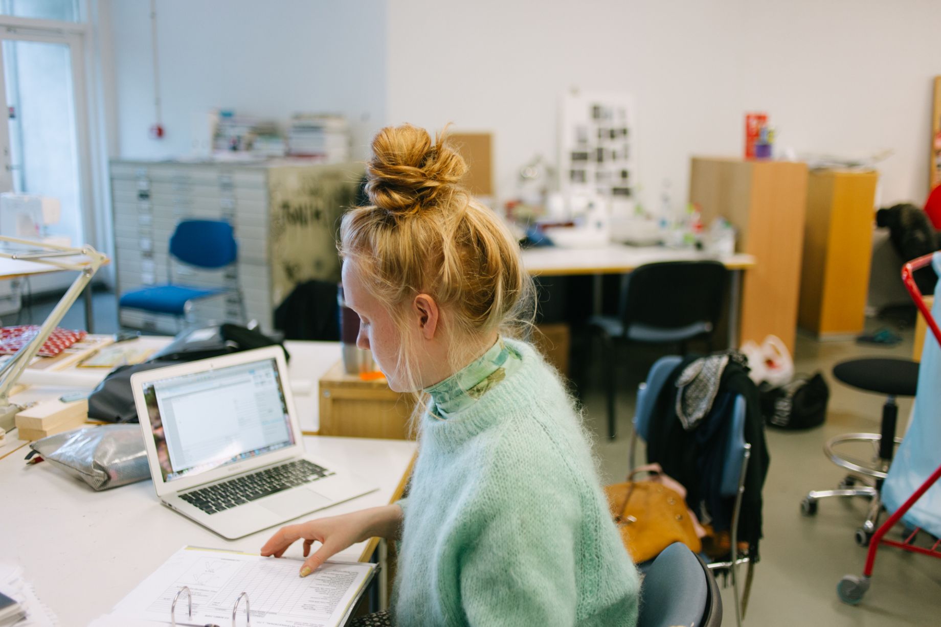 Steinunn: Maður lærir rosalega mikið þarna. Ég var svolítið óánægð eftir síðustu önn af því að það var mjög mikið álag á okkur en ég þurfti bara smá tíma til að jafna mig. Núna er ég mjög ánægð. Á þessari önn erum við mikið búin að vera að læra um það hvernig fatahönnunarbransinn virkar; þetta er ekkert rómantískt en það er mjög gagnlegt að kynnast öllum hliðunum.