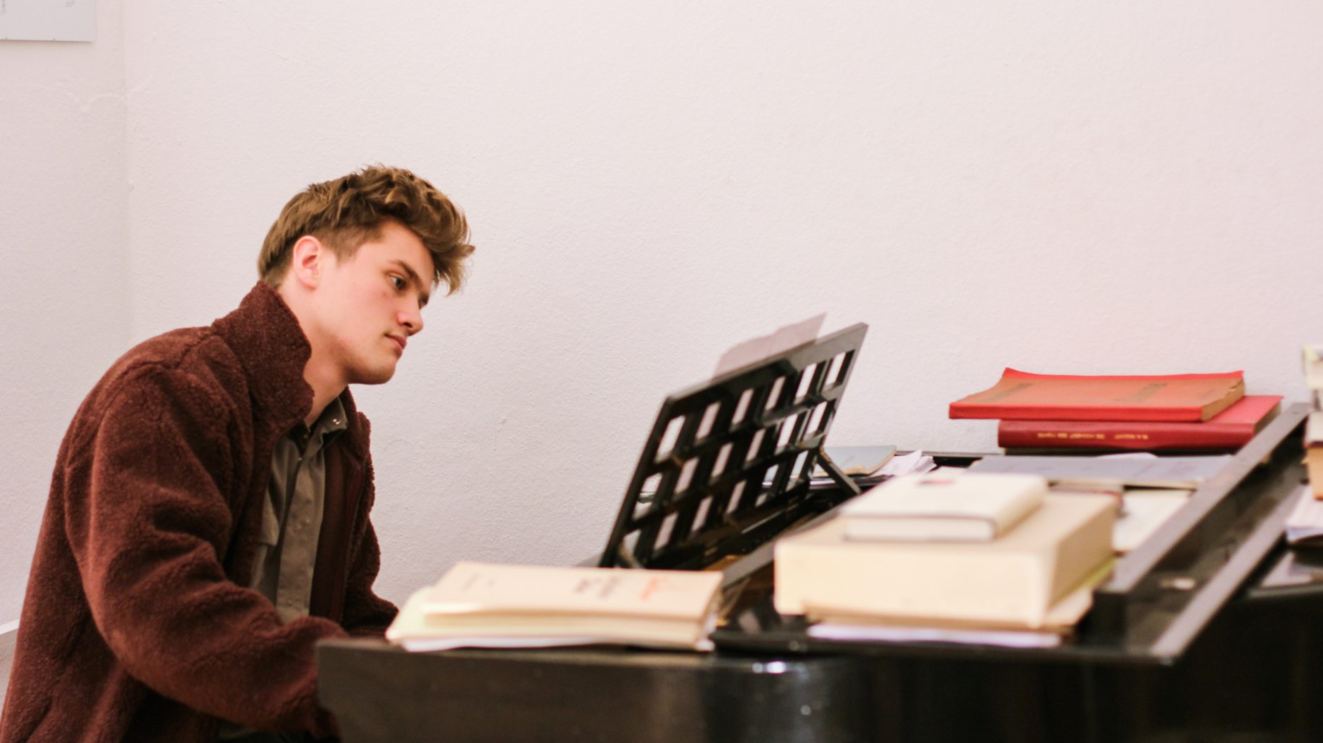 Magnús æfir sig heima hjá sér í Wedding en til þess þarf hann spegil, nótnastatíf og píanó. Að auki notar hann iPadinn mikið, bæði fyrir nótur og til að taka sjálfan sig upp og geta hlustað strax.