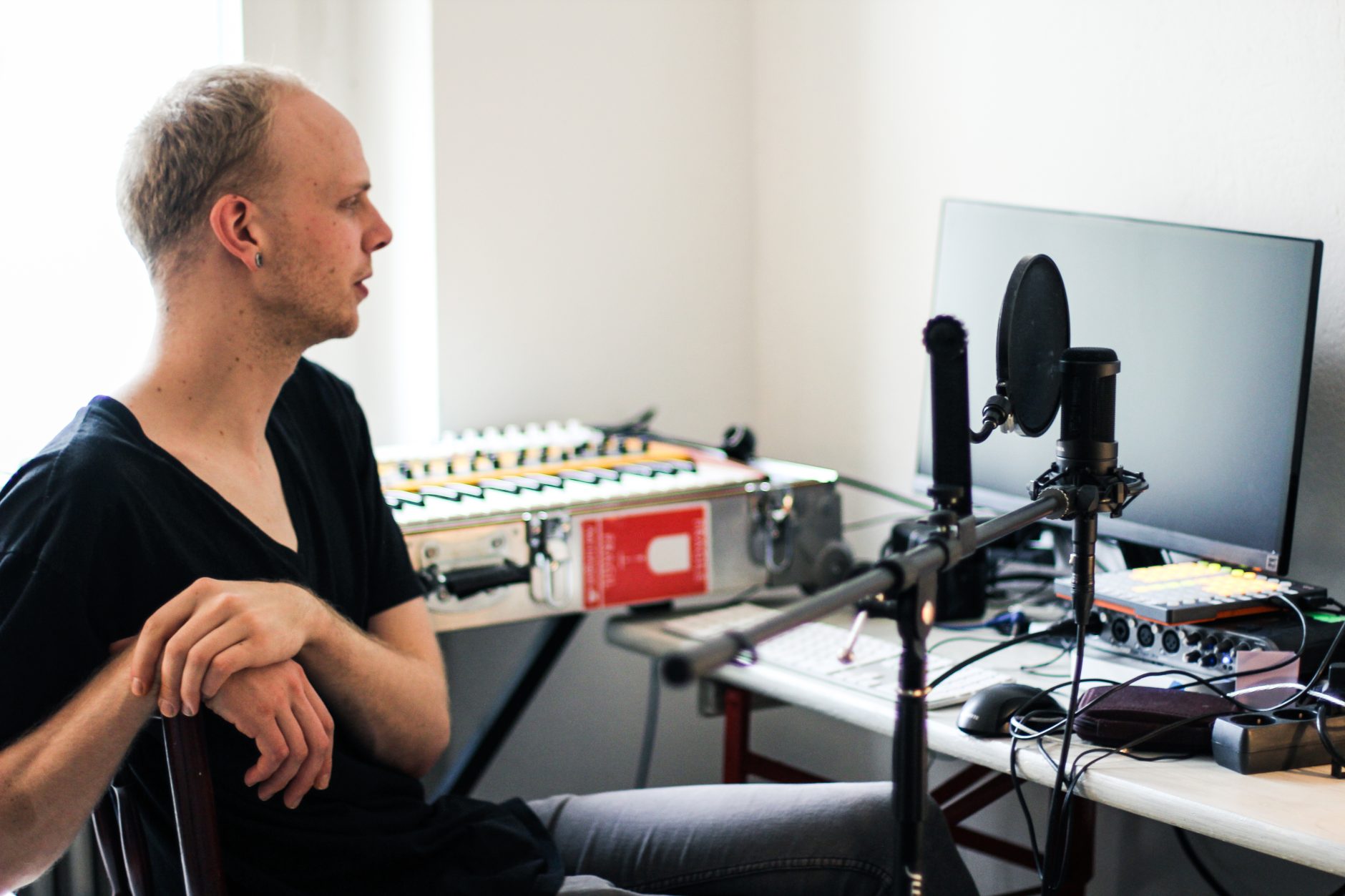 Raftónlistarmaðurinn Hörður Már hóf verkefnið sitt M-band á Íslandi árið 2012 en flutti til Berlínar í júní síðastliðnum. Hann býr í Kreuzberg ásamt systur sinni og þýskum landslagsarkitekt sem vinnur mikið úti svo Hörður getur unnið í tónlistinni heima. Hann dreymir um að eignast eigið stúdíó, helst í fyrrum austur-þýska útvarpshúsinu Funkhaus, en það er staðsett við ána Spree og þá gæti hann kannski stundum farið á kajak í vinnuna.