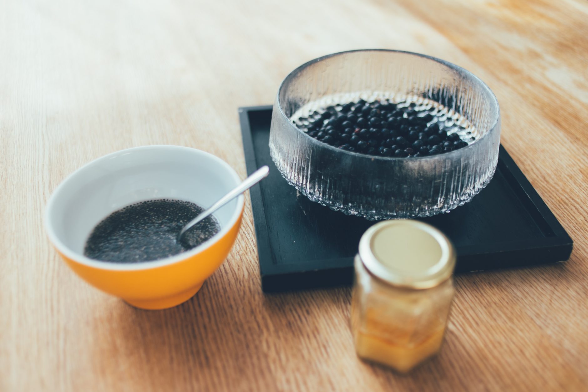 Byrjið á því að leggja chia fræin í bleyti. Gott er að gefa þeim hálftíma í það minnsta. Því næst má sjóða bláberin í potti við lágan hita og leyfa þeim að malla í 10 mín.