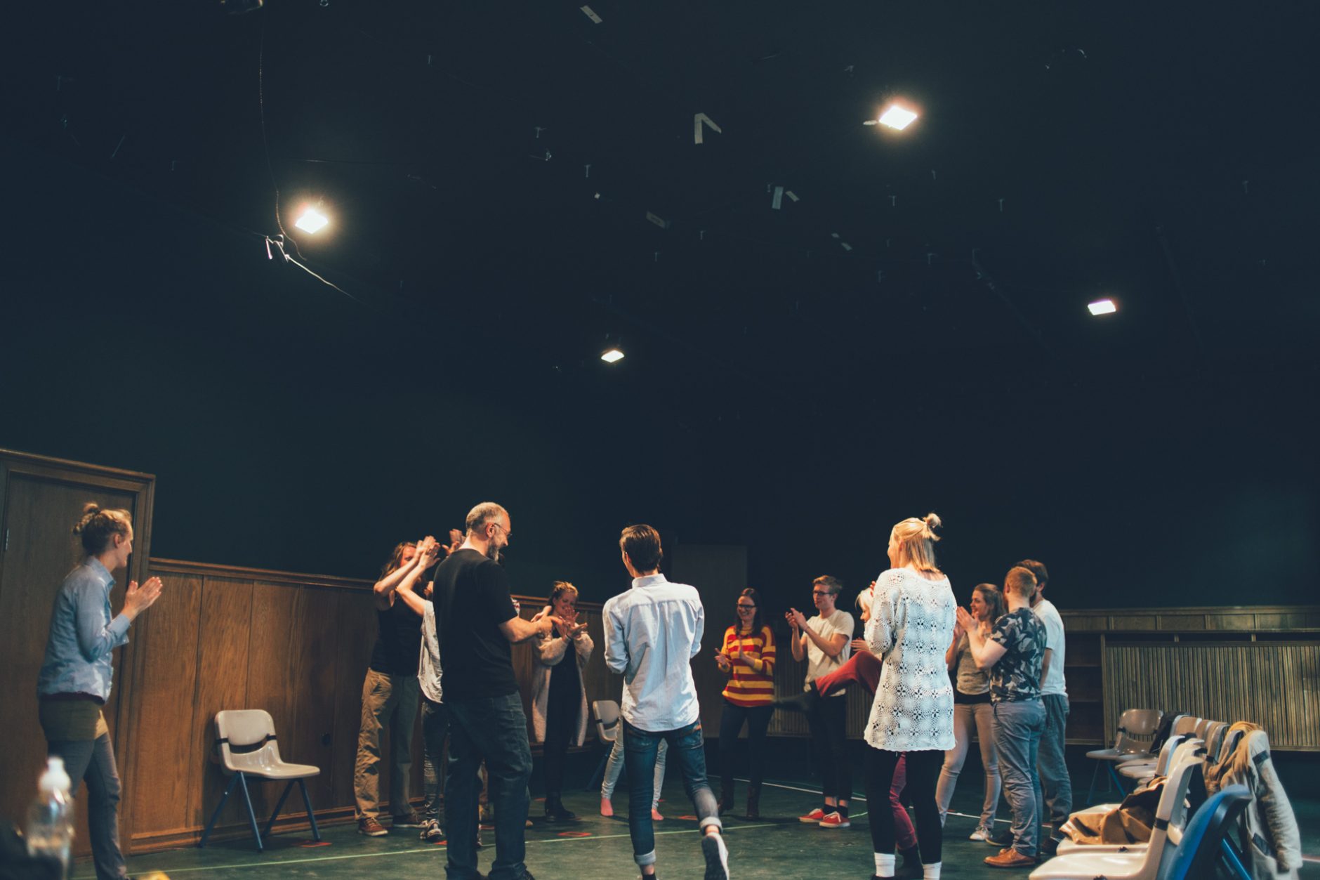 „Öllum er velkomið að vera með. Svo virkar þetta eins og leikhúsið í Chicago. Það er bara svona stigi þar sem þú byrjar á námskeiði, ferð á framhaldsnámskeið, tekur þátt í æfingahópi og ef fólk æfir nógu mikið með okkur getur það tekið þátt í sýningu ...“