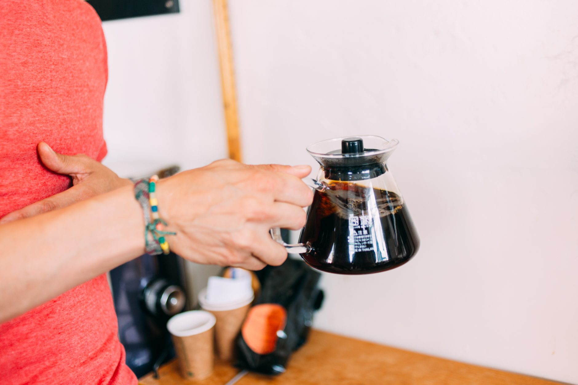 Torfi kennir okkur að hella upp á kaffi og fræðir okkur um ferlið frá uppskeru til uppáhellingar.