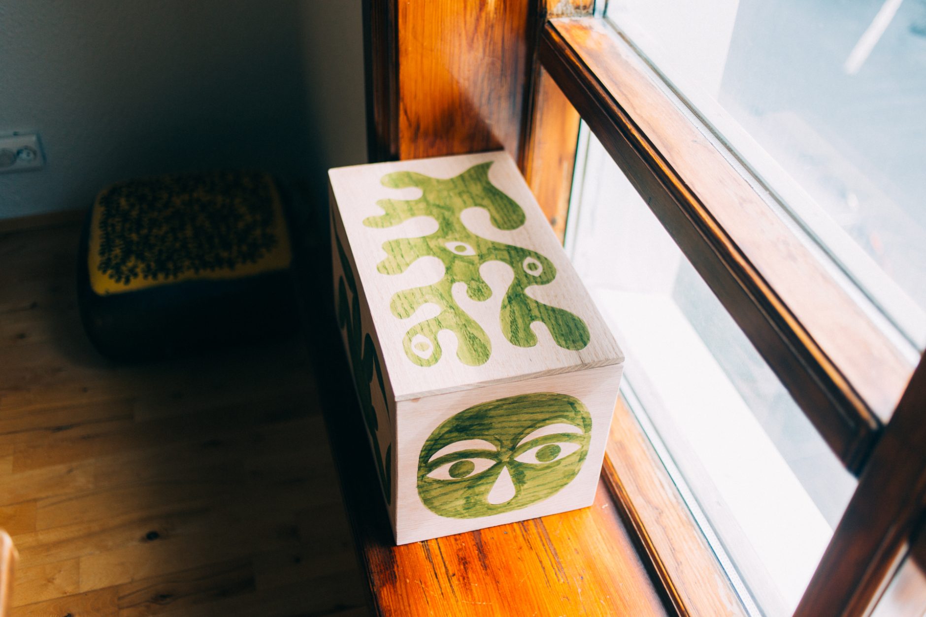 Siggi: Við Anna máluðum þennan kassa fyrir HönnunarMars. Þemað var tehús í „Spark Design Space“ og við gerðum þennan japanska tekassa sem á að innihalda allt sem þarf í japanska te athöfn.