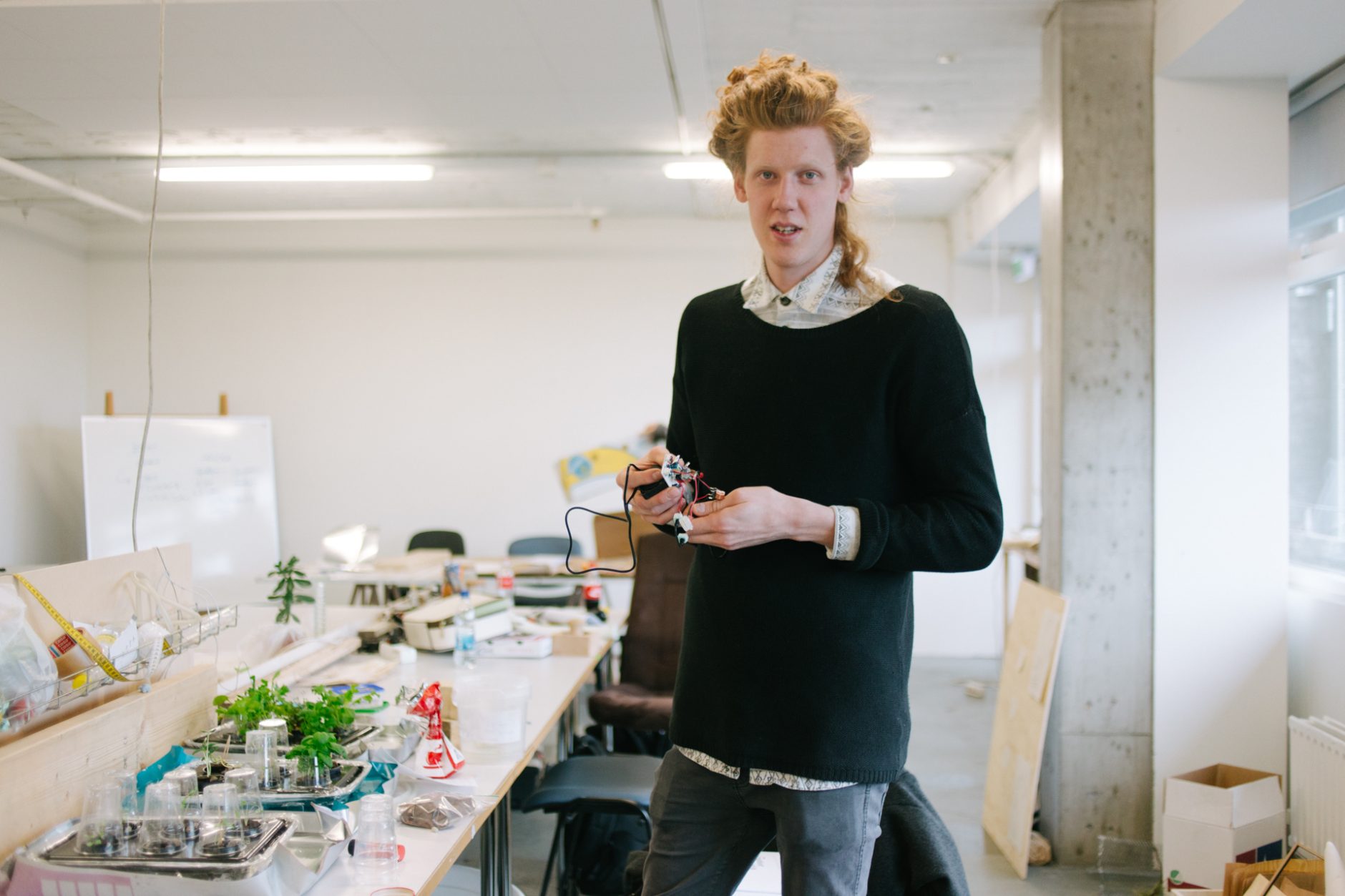 Björn: Þetta er raunar frekar leiðinlegt nám ef maður nýtir sér það ekki rétt. Maður verður að finna leið til þess að aðlaga það áhugamálum sínum. Ég hef til dæmis alltaf haft mikinn áhuga á plöntum og ætlaði meira að segja að verða garðyrkjumaður og fer oft í þá áttina með verkefnin mín. Núna er ég að búa til nýstárlegt vökvunarkerfi.